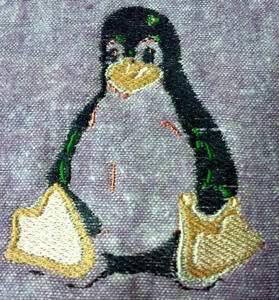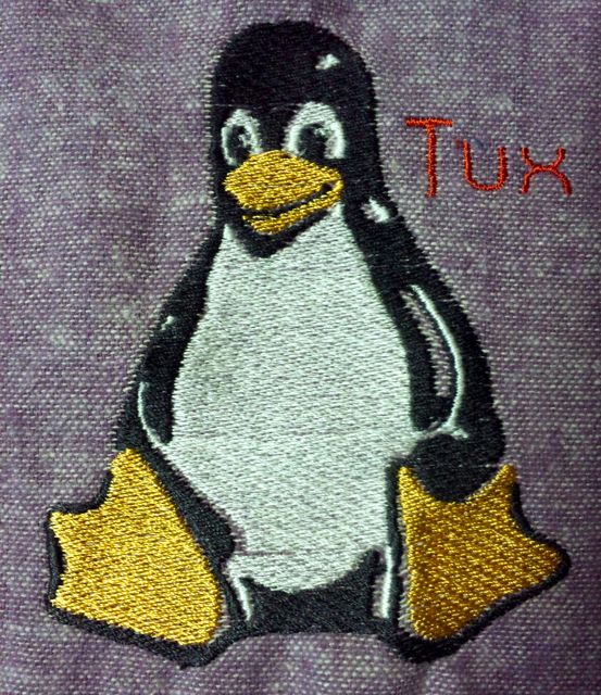 あとカスタマイザーに読み込む画像は,あらかじめ実際に刺繍したいサイズにしておくのがいいですね。ポインタで拡大縮小ができますが,元の縮尺を保ったままでやる機能はないようです。刺繍のTuxくんがなんとなく間延びした感じなのはそのせいです;;